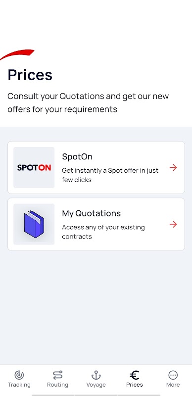 Check all of your existing quotations online or get a new instant quotation when no existing quotation is available, thanks to our pricing features. You can also benefit from our SpotOn offers to get a quotation quickly with secured spot onboard.