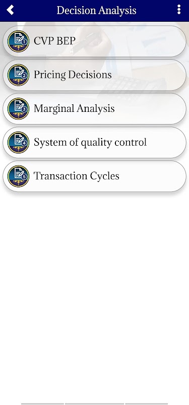 This reviewer app utilizes a learning management system to help the user tackle all the subjects of the US Certified Management Accountant exam. The primary objective of the app is to provide comprehensive, objective, and informative concept discussions, exercises, and assessments to equip the user with the knowledge to pass the exam and earn the CMA designation.