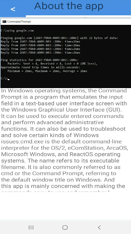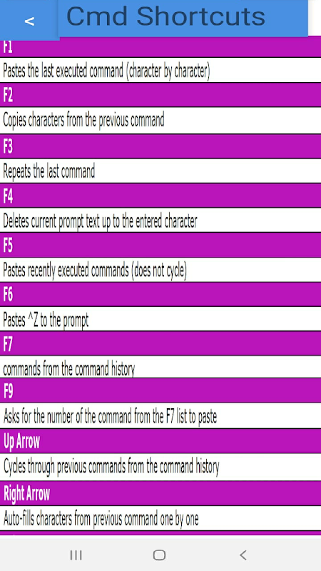 Cmd commands App has 3 features- All commands from A-Z, Shortcuts of the commands and explanation about cmd commands.