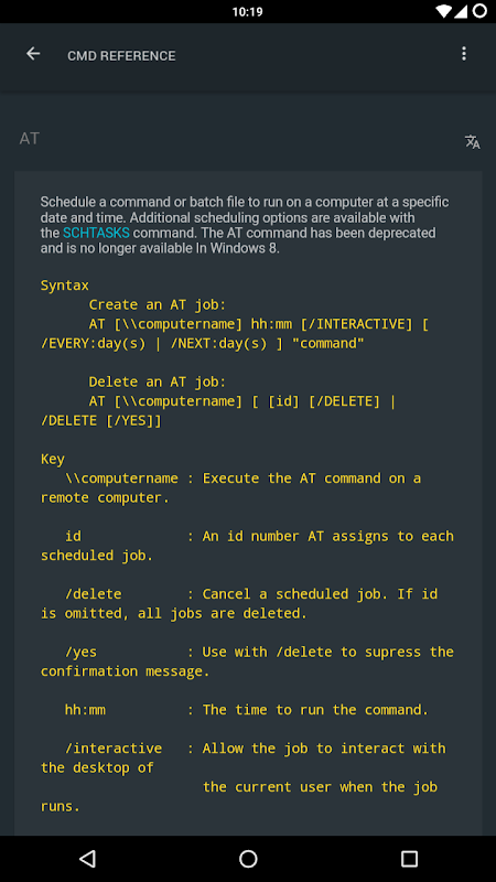 CMD Reference is an application for IT professionals and students, making them better in the knowledge of Windows CMD (MS-DOS).