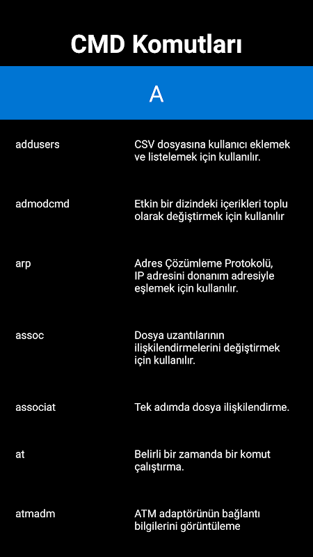 Turkish annotated application where you can learn CMD Commands and their meanings.