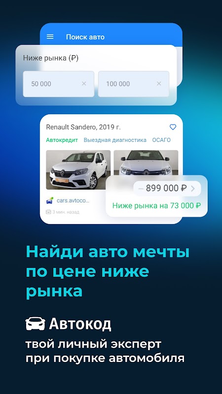 检查您的汽车并获得 7 天无限制的汽车搜索访问权限。 Autocode 应用程序显示来自热门版块的所有广告: