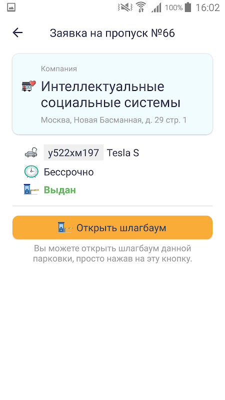 В приложении отображаются все выданные пропуска на нужные вам парковки, а у охраны парковки - номер вашего автомобиля, чтобы вас пропустить.