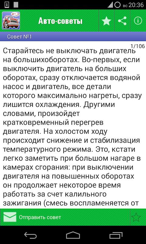 Неважно, считаете ли вы себя опытным водителем или только что получили права, в любом случае вы обязательно найдете для себя что-то полезное в этом приложении, и возможно наши советы автомобилистам однажды спасут вам жизнь!