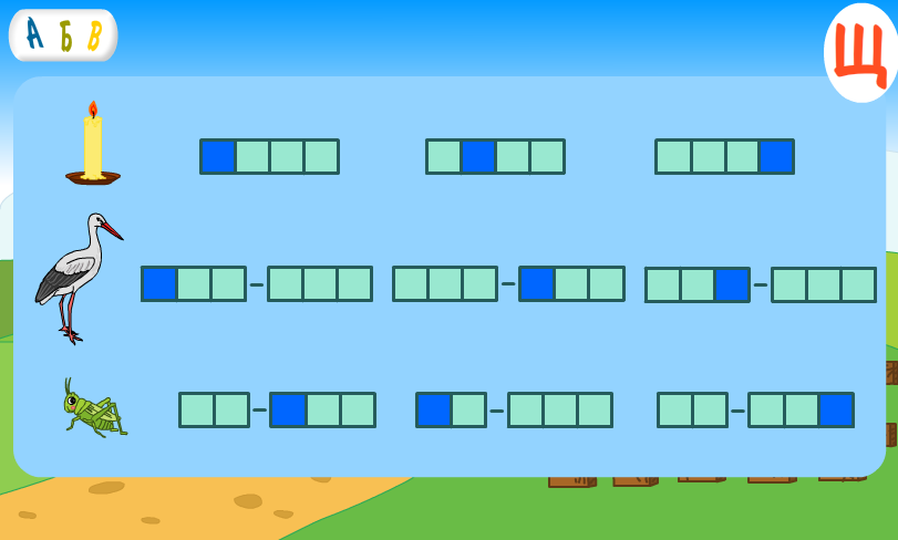 该项目以一个简短的介绍开始,导致一个包含30个保加利亚字母和三个游戏的菜单。选择一个字母后,它会切换到一个插图,其中必须找到包含特定字母的多个元素。接下来是一个包含字母轮廓的模块,可用于将其写出来。在练习集的最后部分显示3张图片,必须知道正确的单词模型。有机会在游戏中的任何一点返回菜单。