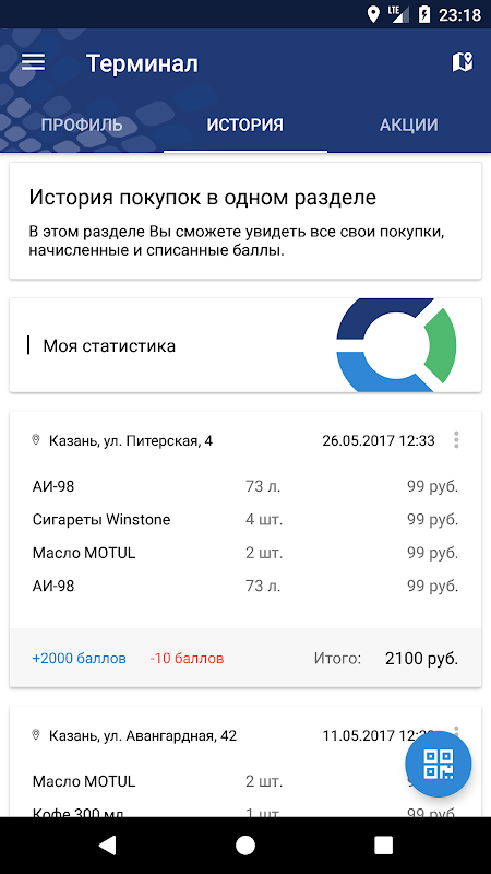 不要忘记在终端网络的加油站为每次购买燃料和货物提供申请的二维码,以累积奖金。 *