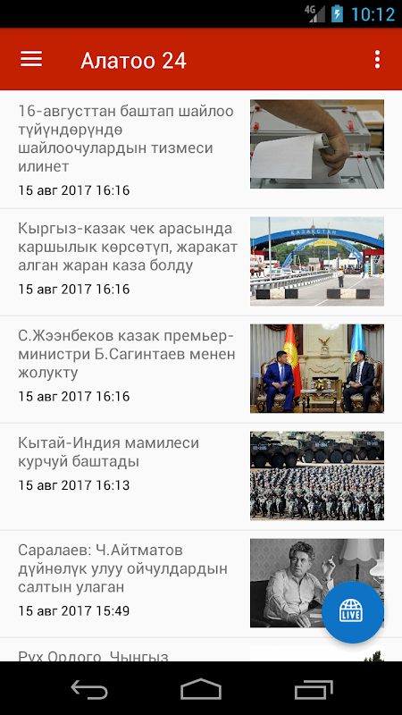 Лучший информационный канал страны Ала-Тоо 24 теперь в вашем мобильном. Новое мобильное приложение «Ала-Тоо 24» - приложение, благодаря которому вы будете в курсе всех самых важных событий, как в Кыргызстане, так и во всем мире 24/7.