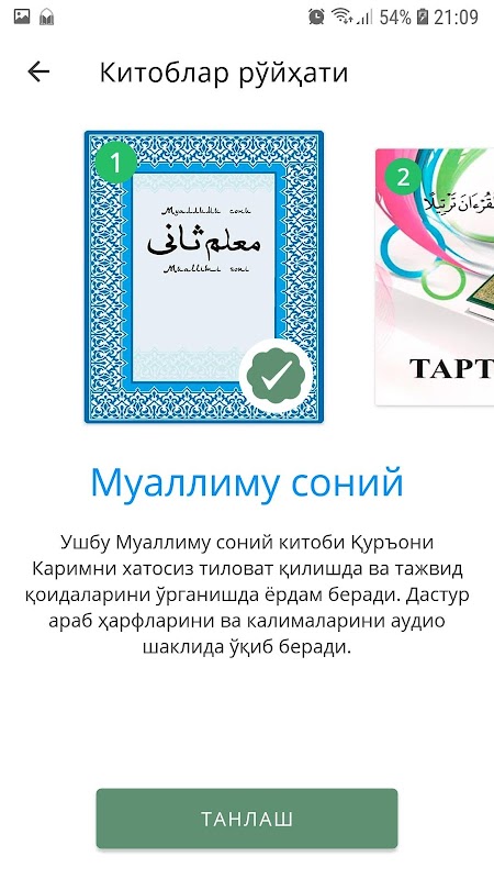 Қuronikarimniаниorganishuchun asosiy manbalardan bulgan“ Muallimi soniy” wa“ Tartil” kitoblarida suratli va ovo vozli shakldagi malumotlarҳamberylgani uv uvchi uchunўuranichni osonlashtiradi。 Shuningdek,阿拉伯人tili luatlari kam带走了shaklda berylgan。 Buҳamodod olish wa talaffuz uchun samarali vositadir。