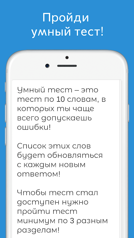 我们还有一个独特的功能 - “智能测试”, - 这是对您最常犯错误的 10 个单词的测试!该列表将在收到回复后更新。