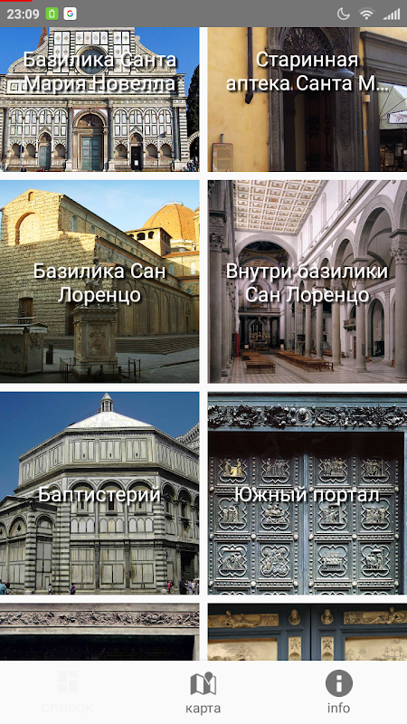 一系列的音频导游意大利能买得起简单,易行,方便城市指南意大利,将向您介绍城市2-3小时的主要景点。这远足音频从专业指导和推进提出的路线。旅游是建立在这样一种方式,以花一天在城市的中心,而无需使用地面运输。佛罗伦萨语音导游将带您从广场玛利亚,在火车站附近,通过奇墓,并提请大教堂圣母百花大教堂,为您介绍SIC目光投向了该地区,并导致旧宫,这Sinrii区域。在那里,你将得到与米开朗基罗,多纳泰罗,切利尼的杰作熟悉,然后通过乌菲齐画廊,旧桥将来到雄伟的皮蒂宫,rezidetsii公爵奇游Boboli花园,在这里你不仅可以放松,还能享受该模型园艺之美结束公园合奏包含产物文艺复兴晚期。