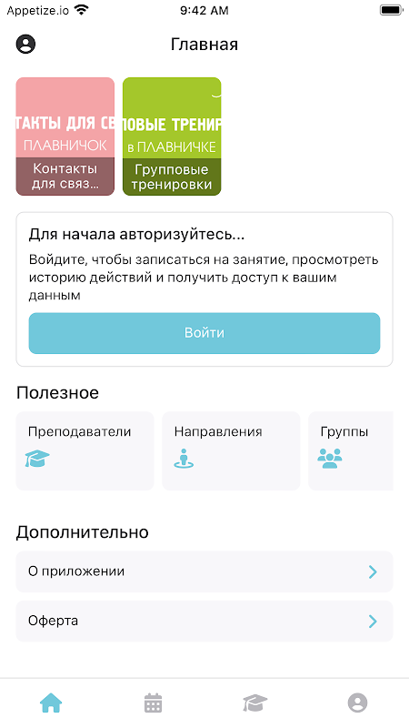 该应用程序适用于 Plavnichok 早期游泳中心的客户。