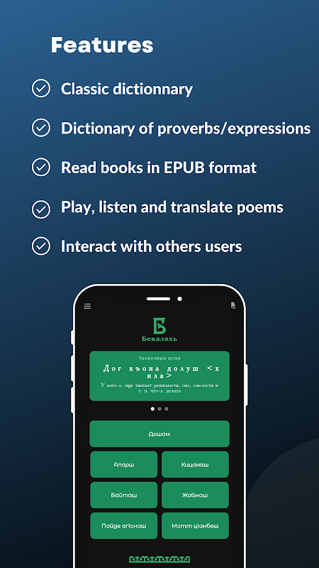 无论您是初学者还是高级演讲者,“Бекалахь”都能为希望加强车臣语言技能的每个人提供帮助。那为什么还要等?立即下载“Бекалахь”,让您的语言技能更上一层楼!