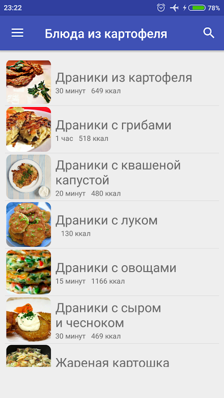 - Рецепты из различных продуктов: блюда из мяса, блюда из рыбы, блюда из тофу и теста (выпечка), рецепты из птицы и курицы, блюда из молочных продуктов