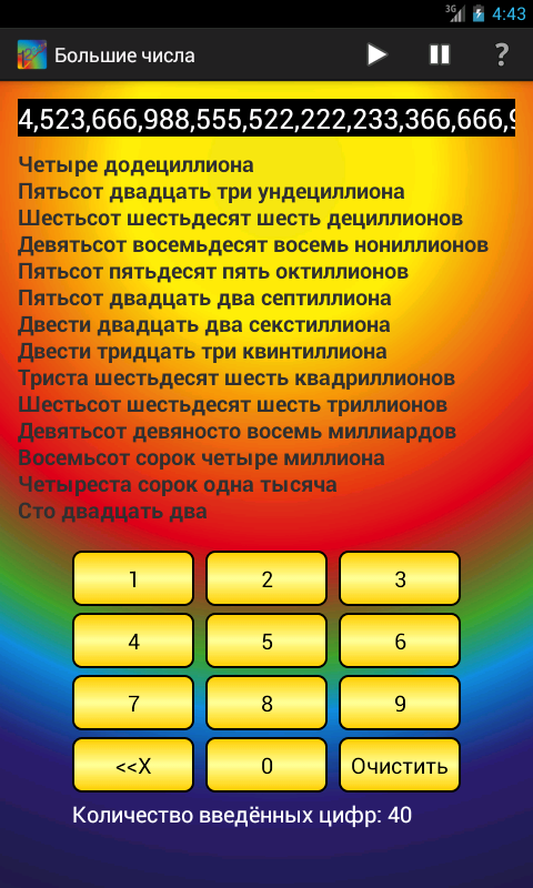 Простое приложение, позволяющее узнать, как читаются и произносятся названия больших чисел.
