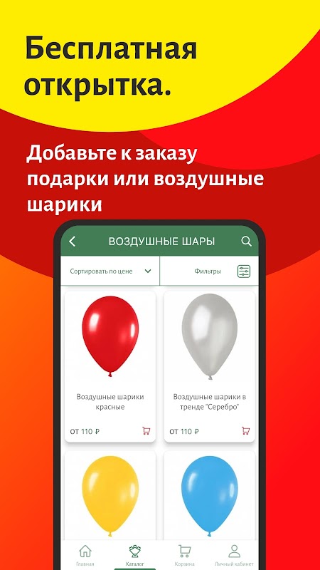 该应用程序有很多选择 - 您可以从花店购买现成的解决方案,或者根据自己的口味安排礼物。我们提供玫瑰、菊花、百合、牡丹、绣球花、雏菊、鸢尾花、喷玫瑰等花卉。