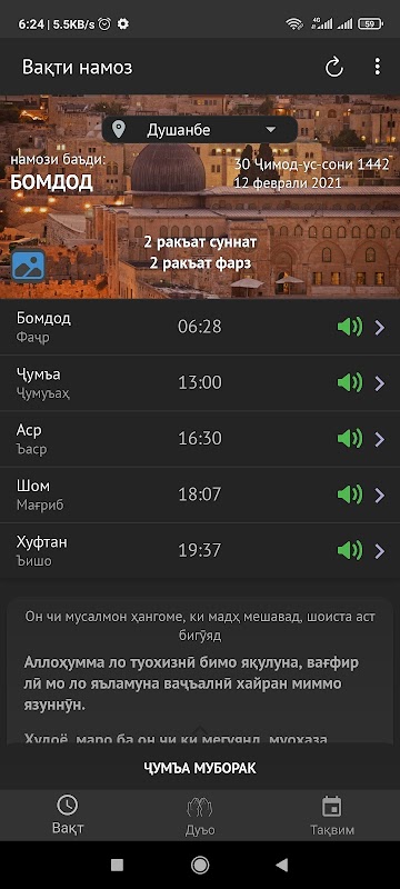 塔吉克斯坦所有城市和地区的祈祷时间。