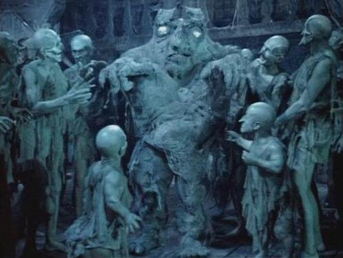 "…Раздался петуший крик. Это был уже второй крик; первый прослышали гномы. Испуганные духи бросились, кто как попало, в окна и двери, чтобы поскорее вылететь, но не тут-то было: так и остались они там, завязнувши в дверях и окнах. Вошедший священник остановился при виде такого посрамления божьей святыни и не посмел служить панихиду в таком месте. Так навеки и осталась церковь с завязнувшими в дверях и окнах чудовищами, обросла лесом, корнями, бурьяном, диким терновником; и никто не найдет теперь к ней дороги…"