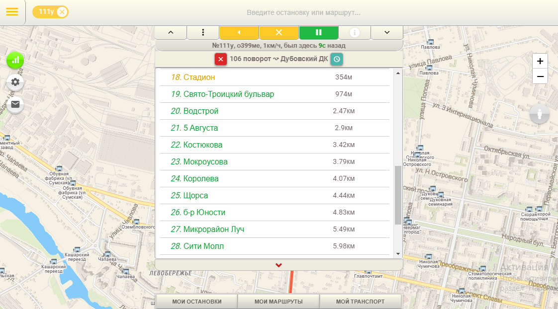 - добавлено отображение области возможного местоположения выбраного транспорта
