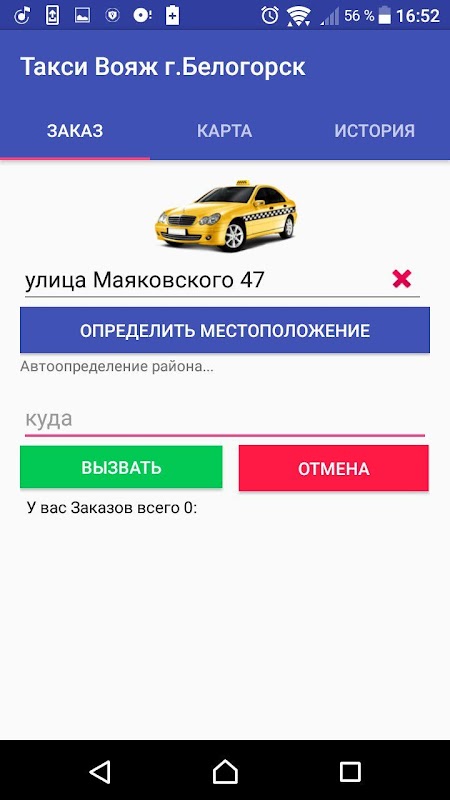 Данное приложение несет основной функционал для вызова такси и отображения состояния заказа, который клиент пожелал сделать в службе такси.