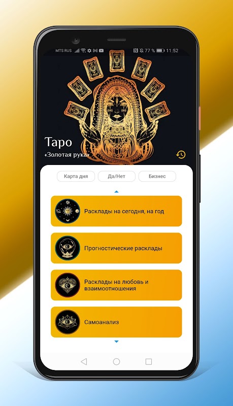 使用Golden Hand应用程序探索塔罗牌解释的古老艺术。