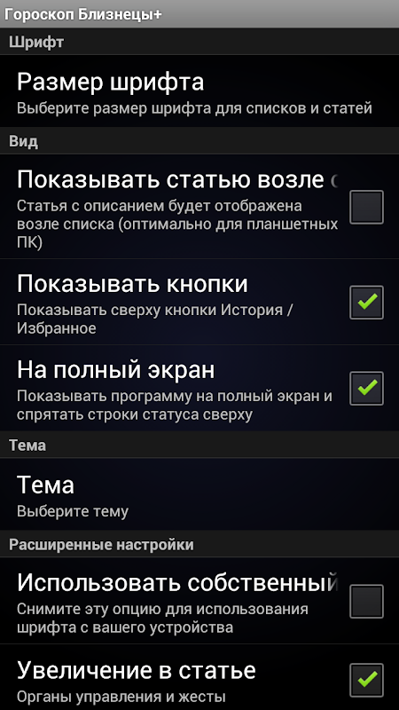 4. Различные настройки – вы можете менять шрифт и тему (выбрать одну из цветовых тем).