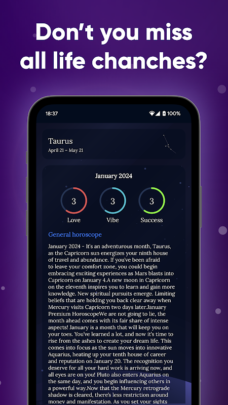 该应用程序既适合占星学初学者,也适合那些长期对星星预测着迷的人。安装星座应用程序,让星星引导您每天走向成功、爱情与和谐!
