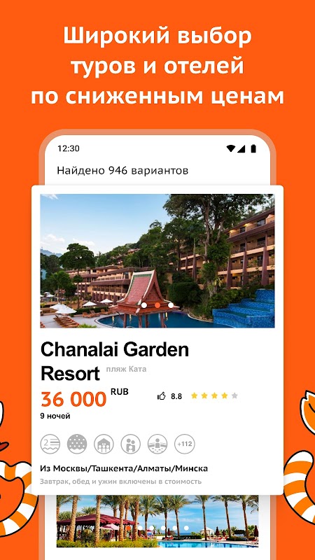 由 Solntsour 网络支持的最后一分钟旅游应用程序可找到前往热门目的地的最便宜的旅游:土耳其旅游、坦桑尼亚(桑给巴尔)旅游、阿联酋旅游、古巴旅游、马尔代夫旅游、埃及旅游、阿布哈兹旅游、塞浦路斯旅游、泰国旅游、越南旅游、多米尼加共和国旅游、希腊旅游、意大利旅游、西班牙、俄罗斯周边旅游等等......而且,低廉的价格并不影响所包含服务的质量和数量:来自俄罗斯30个城市的旅游价格比其他应用程序中的热门旅游便宜两倍或更多。