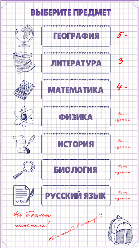努力取得最大成绩,克服困难,成为班上最好的!查看您的虚拟学校日记,了解您参加的每次考试的成绩。与你的朋友竞争,讨论答案,证明你是学校知识世界中真正的优秀学生!