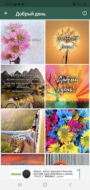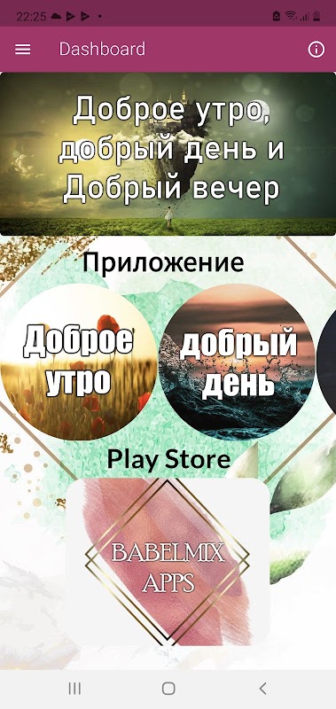 Отправляйте своим близким образы доброго утра, доброго дня и спокойной ночи. В одном приложении у вас есть все необходимое, чтобы порадовать своих близких и поздравить их в течение дня.