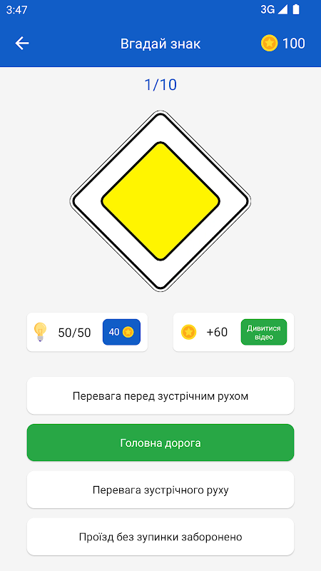 • “对/错”:对交通规则知识的快速测试。您将获得有关路标的陈述 - 确定它是真是假。用于修复细微差别和自我检查。
