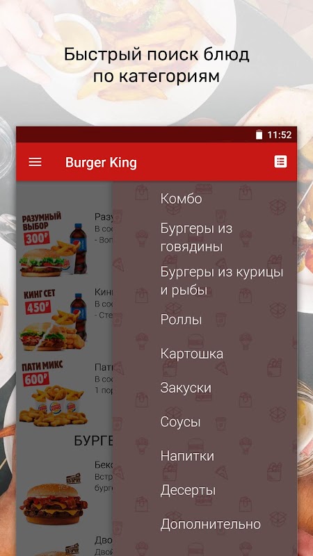 Вы можете заказать блюда из ресторанов «Макдоналдс», «Бургер Кинг», «KFC», «Веранда», «Аль-Маида», кафе быстрого приготовления «Папа-Дони». Планируем добавить ещё ресторан «Барашки», суши «Sushi Life», а также в скором времени будет доступна доставка из сети магазинов товаров повседневного спроса «Впрок», про продуктовые магазин «Эссен».