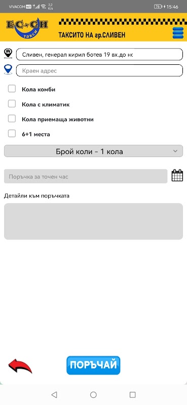 1 - 在屏幕中间的绿色标记是所需的地址出租车,并确认与地址为“家庭地址”。