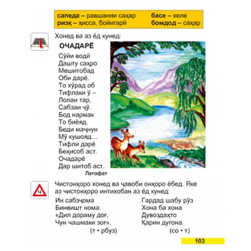 Хондан ва навиштан калиди дониш аст. Бо ин калид шумо дарвозаҳои донишро як-як кушода, ба Боғи маърифат ворид мегардед. Китоби «Забони модарӣ» шуморо ба сайругашт ва мустуму дар «Боғи дониш» даъват мекунад. Дар ин сафари шавқовар дустони ҳамсолатон - Азизмону Азиза ва бобои Хирад ҳамроҳи шумо хоҳанд буд.
