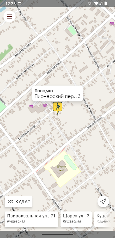 通过此程序,您可以订购出租车。库什切夫斯卡娅(Kushchevskaya)找出这次旅行的初步费用,进行预订。