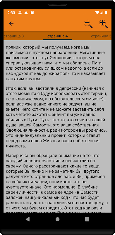 在应用程序中,您将可以访问索菲亚的书“抑郁症免疫”。手册很短,可以快速阅读。