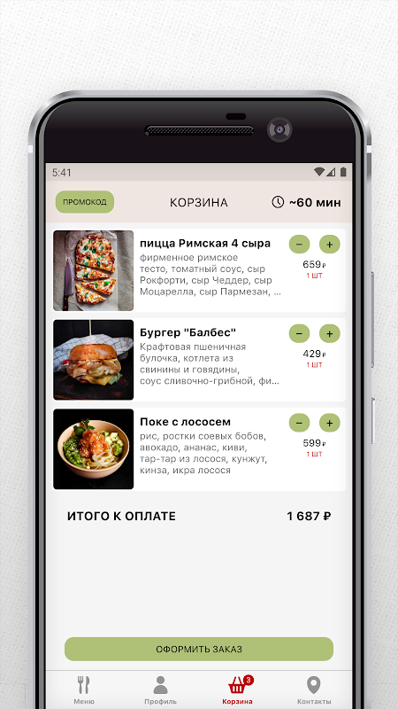 具有完整菜单、当前价格、有利可图的促销和快速交货的便捷应用程序。订单将尽可能方便快捷地处理。
