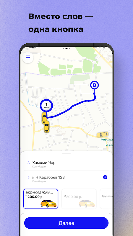 通过应用程序在塔吉克斯坦共和国订购Kand-express。比电话快3倍!从想要到达正确地点的愿望到寻找汽车之间有几秒钟的时间。