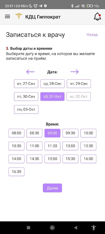 CDC“希波克拉底”(科列诺夫斯克):预约、支付服务、通话记录