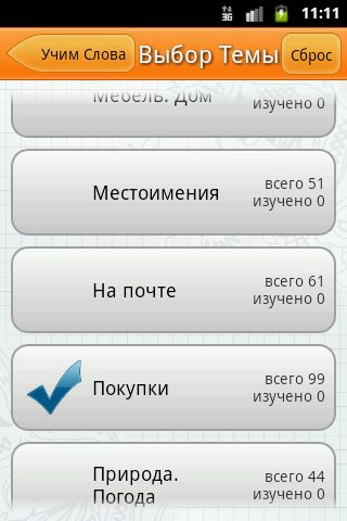 - тестирование осуществляется как по разделам, так и по общей базе слов.