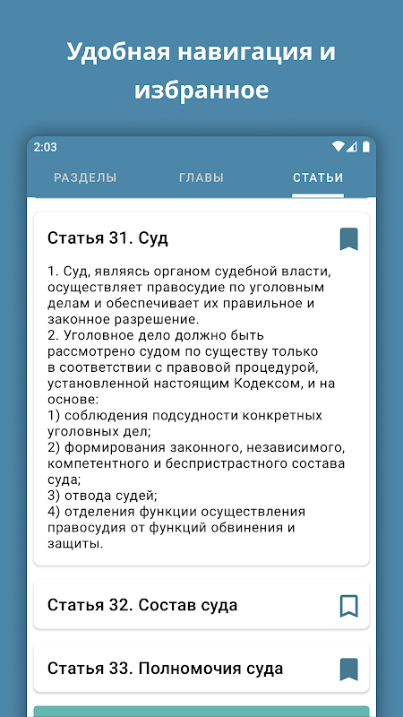 如果您是法律专业的员工或学生,那么现在您不需要随身携带笨重的印刷版代码或使用各种网站。该应用程序具有按章节、章节、文章及其内容进行便捷的搜索功能。能够将所选文章添加到收藏夹、轻松导航以及更改主题的能力。我们的主要原则是信息的相关性,因此,如果您可以访问互联网,您将了解特定代码的更改以及后续更新的可能性。