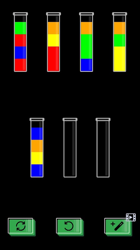 游戏级别随着难度的增加而进步。一开始你只有 3 个瓶子需要分类。但随着级别的升高,它们的数量也会越来越多。只有一个空瓶子。因此,一定要仔细思考并计算在哪里以及如何浇注这种或那种颜色。瓶子里的水量是有限的,请记住这一点。您在烧瓶中倒入的液体不能超过一定水平。所有胶囊的尺寸和容量均相同。