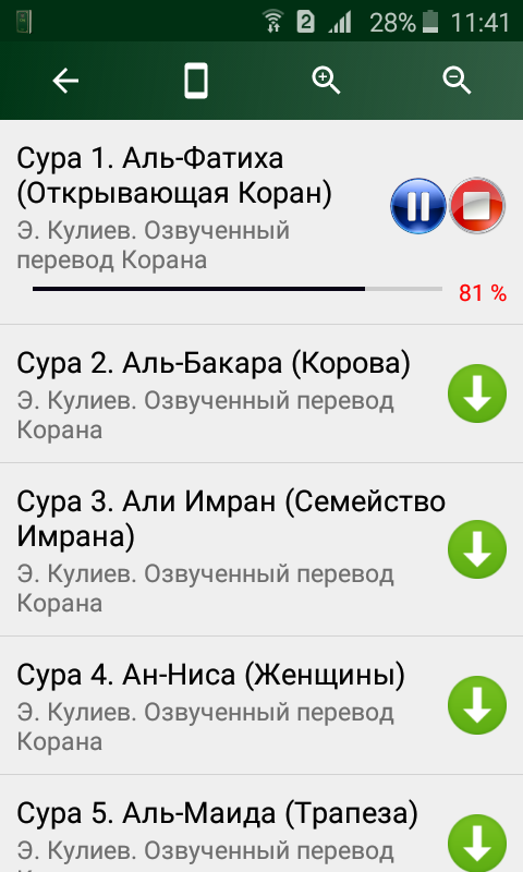 古兰经的翻译和音频版本。 E. Kuliev(对al-Saadi和Ibn Qasir的解释)