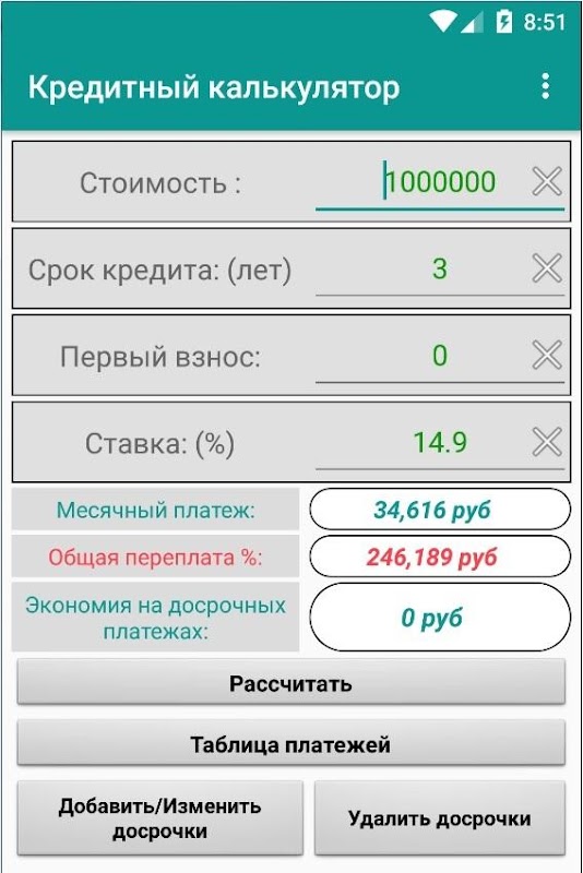 "Кредитный калькулятор" - бесплатное приложение по расчету кредита.
