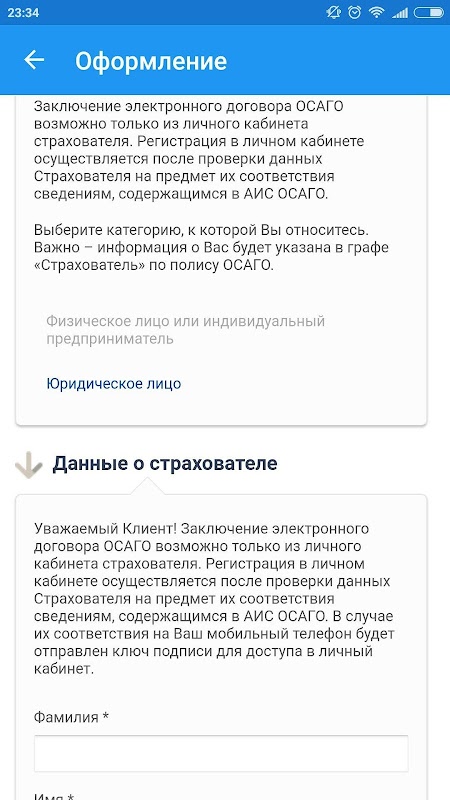 • Оформление электронного полиса ОСАГО доступно и физическим и юридическим лицам