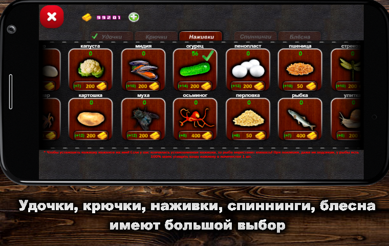Множество рейтингов, после выуживания вам показывается результаты рыбаков в реальном времени, разнообразные достижения, задания с увлекательным процессом выполнения и описанием поставленной задачи. На главном экране вы найдете чат онлайн рыбаков можете задать там вопросы, поэтому бери удочку или спиннинг в руки и покоряй вершины рыбаков.