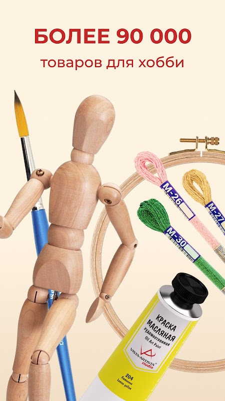 在应用程序中,您将找到超过 90,000 种不同的产品,用于装饰、手工艺品、创意和愉快的休闲时光。有用于绘画、缝纫、刺绣、针织、建模和压花、剪纸和剪贴簿以及许多不同类型手工制作的工具和材料。