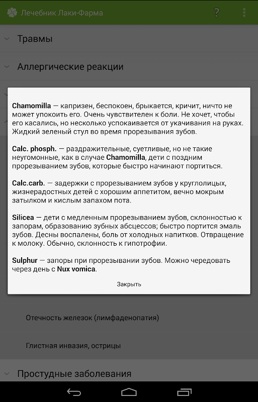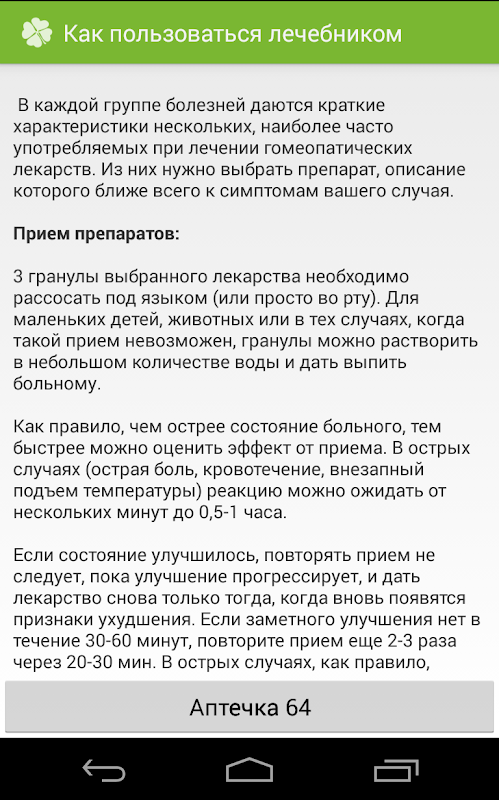 Lechebnik幸运制药 - 通常用于顺势疗法药物用于各种急性传染病名录为其提供紧急援助是最有效的顺势疗法。由于疾病的方便分组和症状的详细介绍,您可以快速地拿起对应你的情况药物。