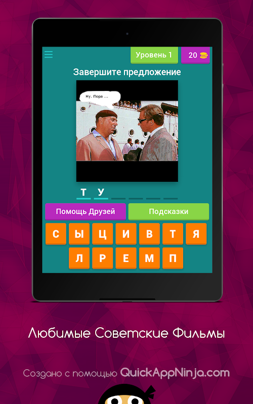 На экране иллюстрация из фильмов, а также часть фразы героев. Попробуйте вспомнить или отгадать пропущенные слова.