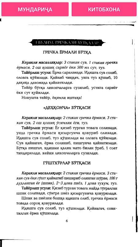 Мазкур тўпламга кирган бутербродлар, салатлар, ичидеиздар^иссиқтаомлар рецептлари дунё ошхонаси таом&омасидан саралаб олинди. Китоб қўли ширин, пазанда бекалар, шунингдек, эндигина ошхонада таом тайёрлаш сцрларици ўрганаётган қизларимиз эътибо- рига ҳавола этилади.