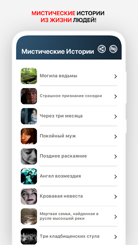 Если вы любите читать увлекательные мистические истории, то это приложение станет для вас просто идеальным способом заниматься прочтением мистики. С его помощью вы сможете изучить огромное количество реальных мистических историй. Каждый предоставленный сюжет полностью уникален и интересен, поэтому такое приложение обязательно должно быть у каждого любителя мистических историй.